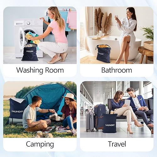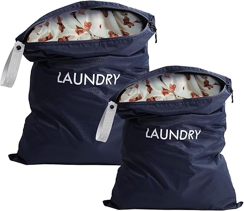 Lot de 2 sacs à linge, 45 x 60 cm, 35 x 55 cm, sacs à linge de voyage étanches avec fermeture éclair, sac de rangement pliable, sac de rangement, sac de rangement, sac de voyage, sac à linge, sac à