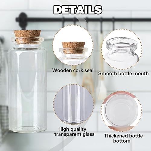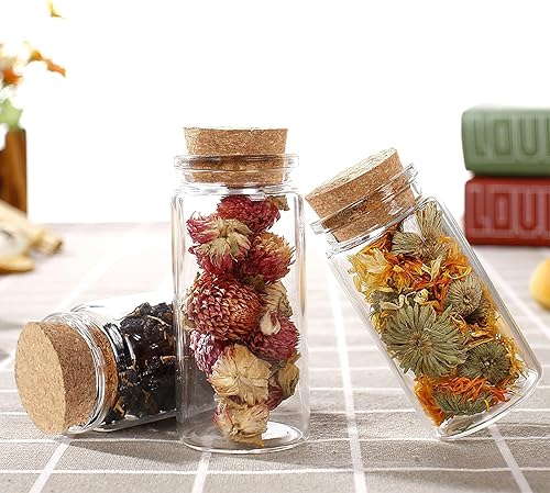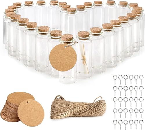 RAFIYU Lot de 30 mini tubes à essai en verre de 10 ml à remplir, mini bouteilles en verre avec bouchon pour cadeaux d'invités, décoration de mariage, bricolage, petits pots à épices avec jour