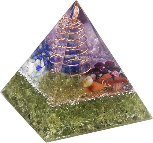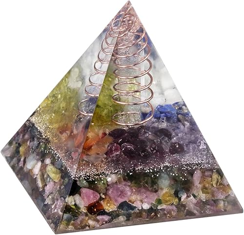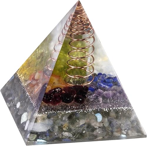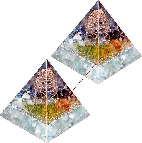 KYEYGWO Grenat Reiki Pyramides avec Baguette Point en Cristal de Roche, Cristal Pyramide en Fil de Cuivre pour Chakra Collection Décor Méditation