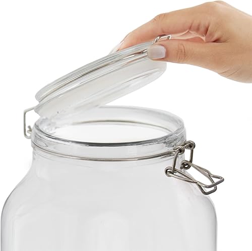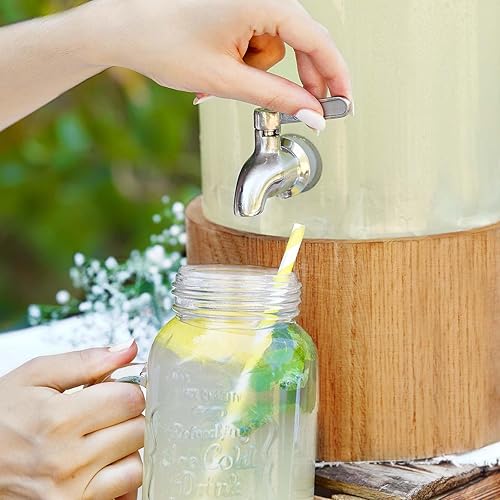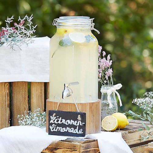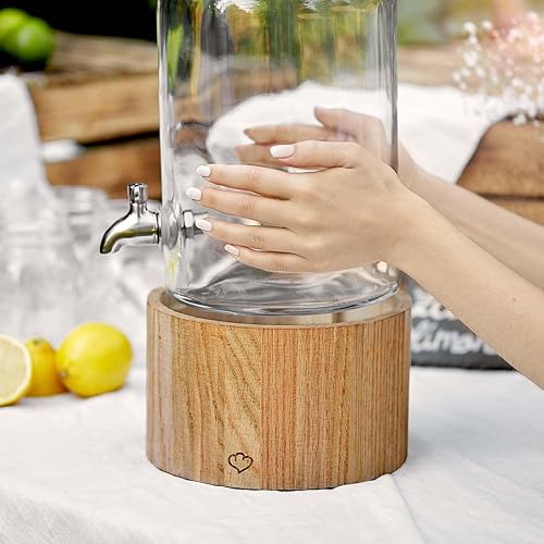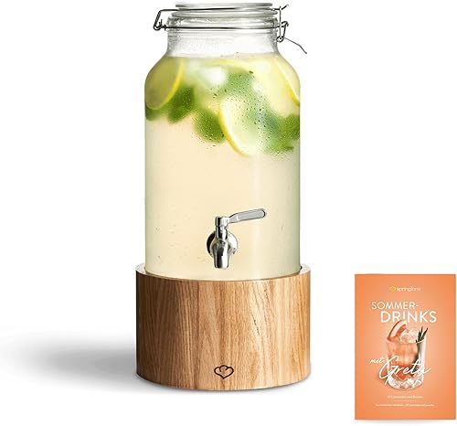 SPRINGLANE Greta Distributeur de boissons en verre avec robinet en acier inoxydable et support en chêne, distributeur de limonade, pot Mason au design vintage (5 L)