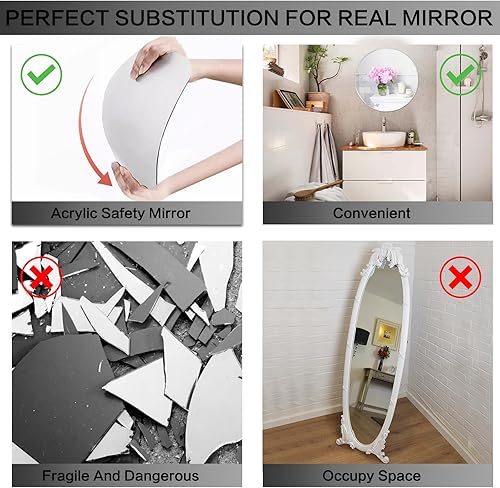 FINGER TEN Miroir Mural Autocollant 15 Pièces Rond en Acrylique, Bricolage Muraux Auto Adhésif Ronds Decoration Flexible Miroirs, pour Salon Chambre Maison Murale Salle Bain (30x30cm 15 Pièces)