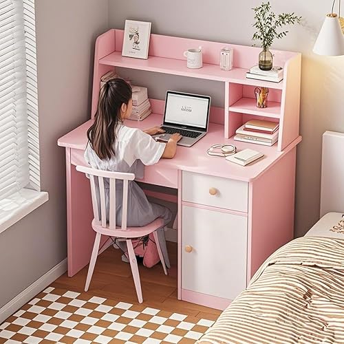 Bureau Enfant avec Tiroir, Bibliothèque, Étagères Ouvertes,Table d'étude en Bois,31.5*15.7*42.1in Bureau Enfant Fille,avec Tiroirs Et Compartiments De Rangement,Table d'étude, pour Lecture/Apprentissa