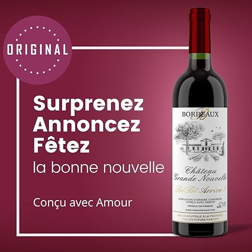 4 Etiquettes Autocollantes Bouteille de Vin - Annonce de Grossesse Originale BéBé ARRIVE | Futurs Grand-Parents | Annonce Naissance - Futur papy - Future mamie - Tonton - Tata - Parrain - Marraine
