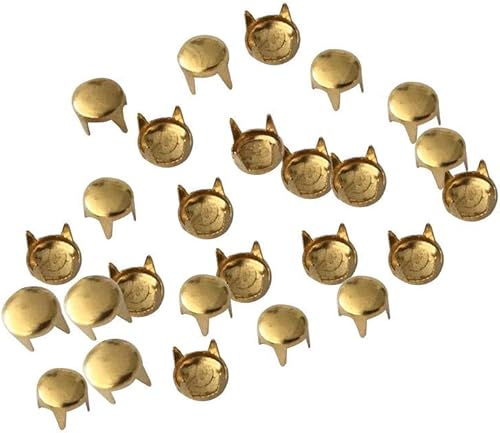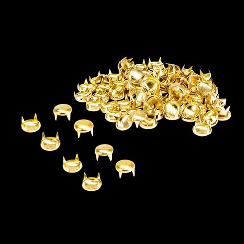 Trimming Shop 100 Pièces Rond Tête Clou Clous - Doré Main Pressées 5mm Rivets - Compatible pour Cuir Artisanat, Décoration Vêtements, Vestes, Ceintures, Chaussures, et Sacs