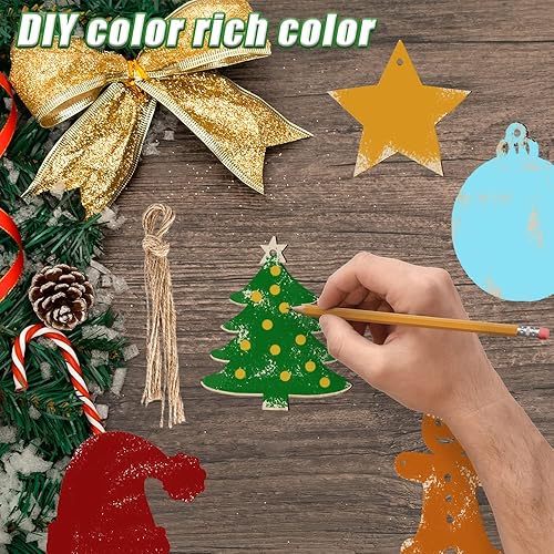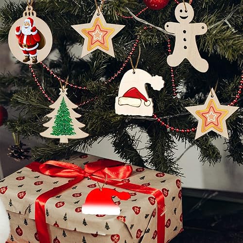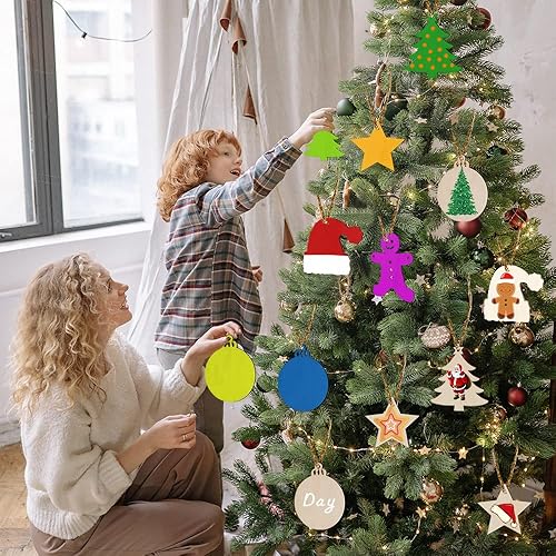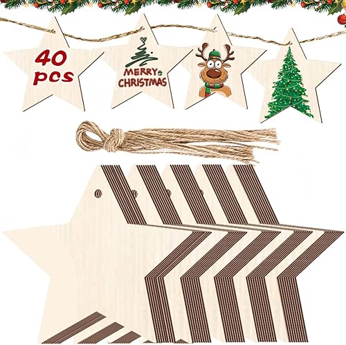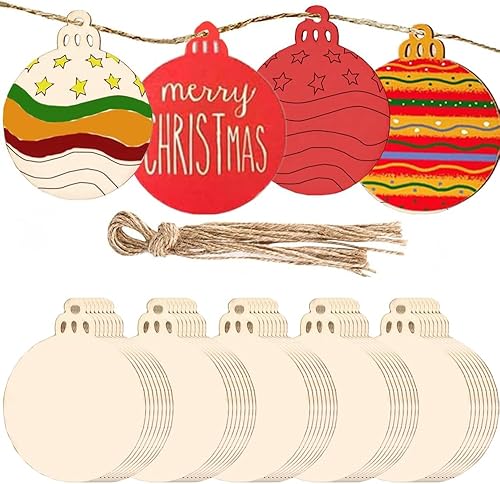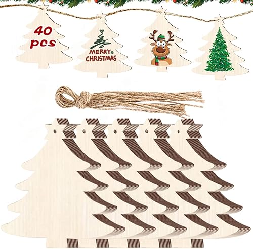 40 Pièces Pendentifs Décoration Bois,Bricolage de Noel,Pendentif Bois pour Sapin de Noel,Bois Arbre de Noël Ornements,Ornements de Noël en Bois,Boules de Noël Rondes en Bois (E)