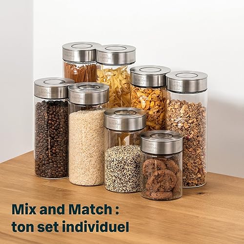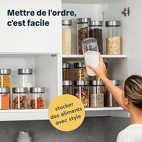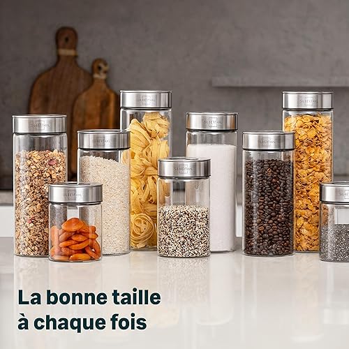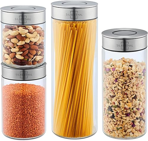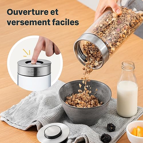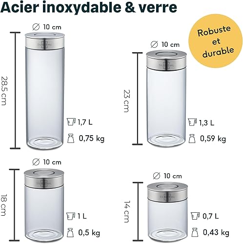 SILBERTHAL Bocaux en Verre Avec Couvercle en Inox - Hermétique - avec Étiquettes - Récipient Vrac Et Zéro Déchet - Pâtes, Cereales, Riz, Farine