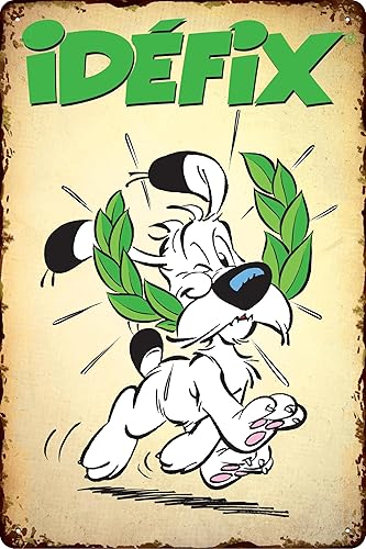 LUCKYLINDE - Plaque en tôle rétro ASTERIX et OBELIX, série culte de bande dessinée française, plaque décorative, 14 x 20 cm (Idefix)