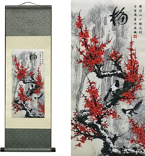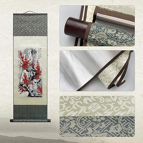 Peintures en Soie Murales Décoration Murale Asiatiques 4 Fleurs D'hommes Justes - Prune Orchidée Bambou Chrysanthème - Prune Belle Chinoise Défilement Peinture Décoration Orientale (94 x 30cm)