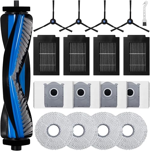Fixbetter Kit d'accessoires pour aspirateur robot Ecovacs Deebot T50 Max Pro Omni, 1 brosse à rouleau, 4 filtres, 4 sacs à poussière, 4 tampons de nettoyage, 4 brosses latérales de rechange pour