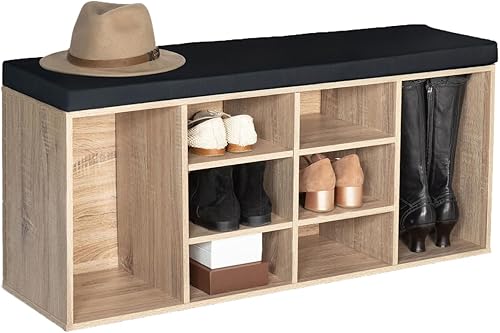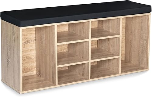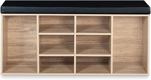 IDMarket - Banc d'entrée Chaussures TEO Bois Imitation hêtre et Coussin Noir