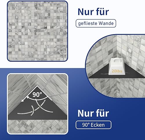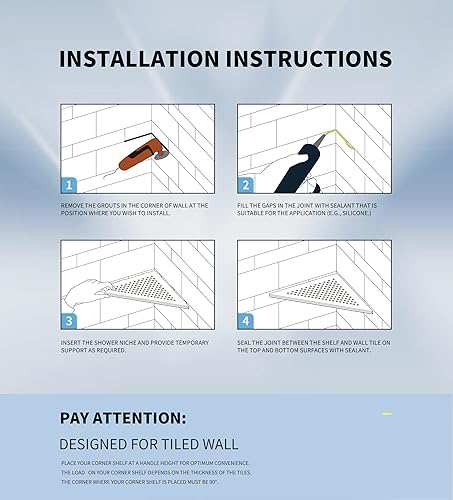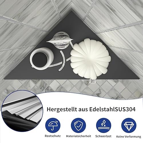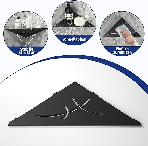 Bernkot Étagère d'angle de douche noire en acier inoxydable 304 - 254 mm - Étagère murale carrelée - Étagère triangulaire pour rangement de salle de bain sans perçage
