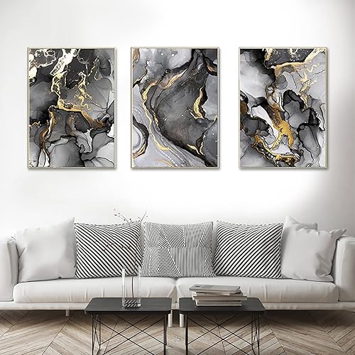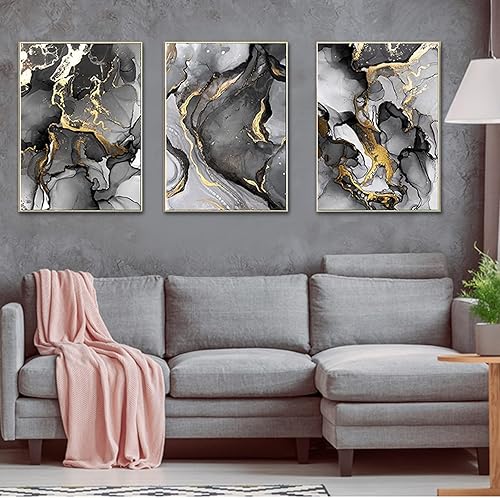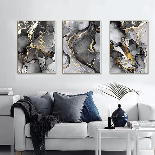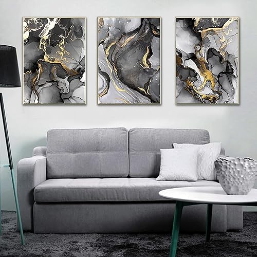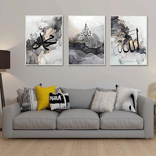 ERTLKP - Lot de 3 peintures sur toile sans cadre - Abstraction dorée - Avec des citations religieuses en calligraphie arabe - Pour décorer le salon - 40 x 60 cm - Noir