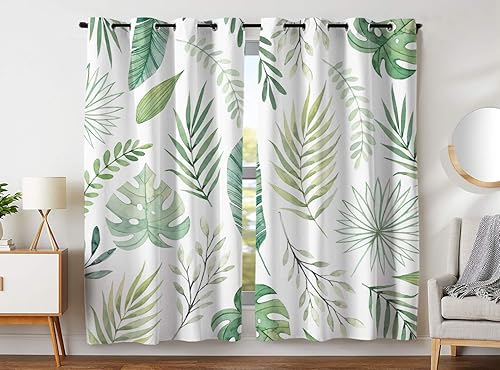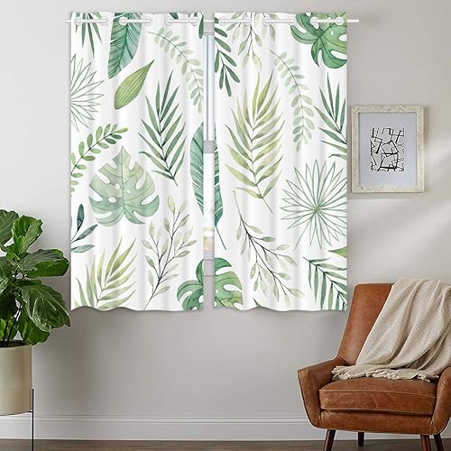 YISUMEI Rideau occultant isolant thermique pour chambre à coucher salon, motif feuilles de palmier vertes, 2 panneaux