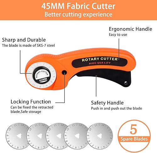Cutter Rotatif 3 Lames Solide de Rechange en 45mm avec Verrou de Sécurité,Maniabe Pour Couture,Papier,Tissu,Toile,Matelassage,Scrapbooking et Projets D'artisanat