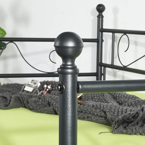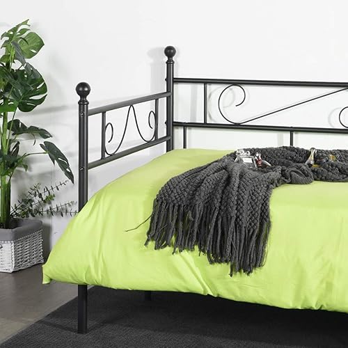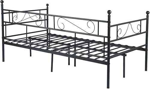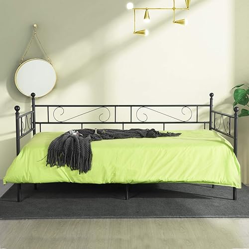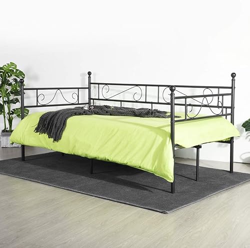 LiePu Lit Banquette Canapé Lit en Fer Forgé, Lit de Jour en Métal Lit Simple pour Enfant Adulte, 90 x 190cm, Noir