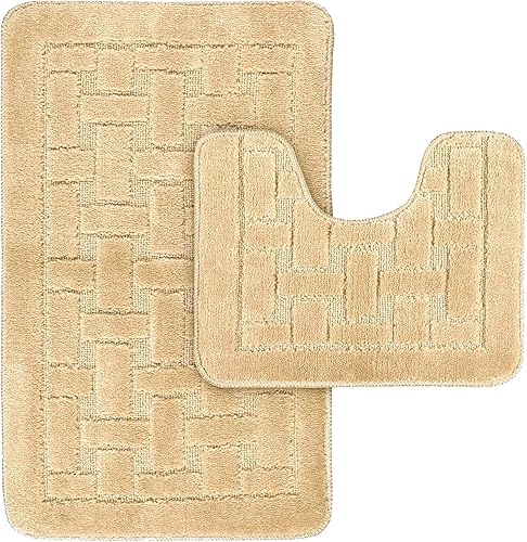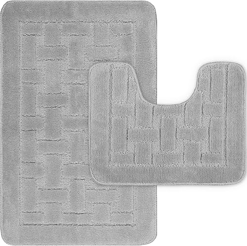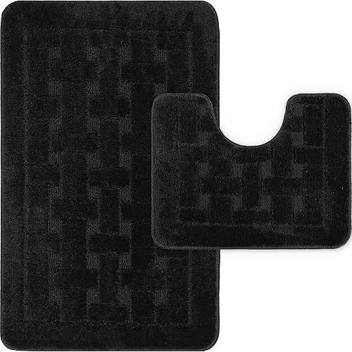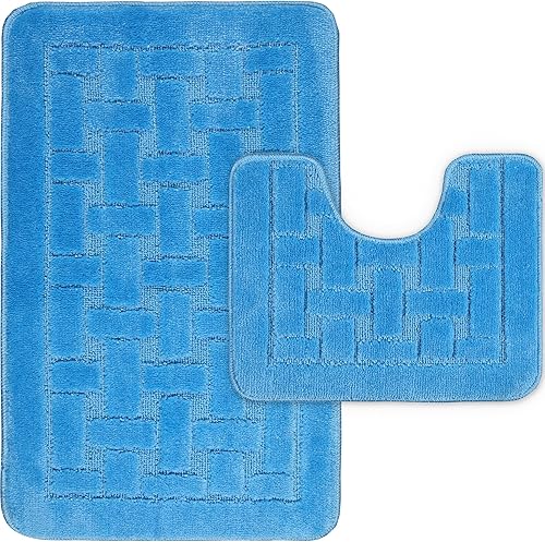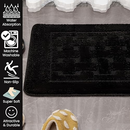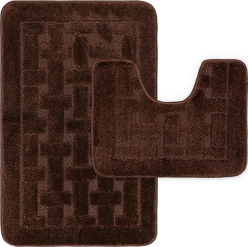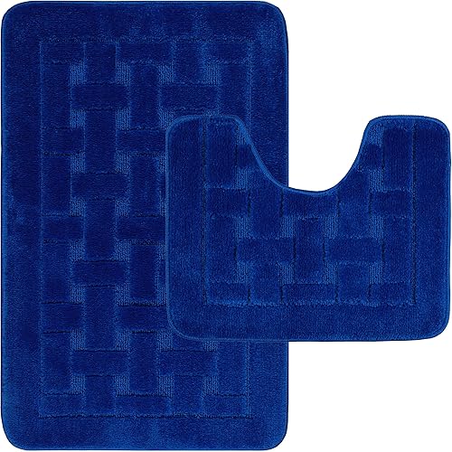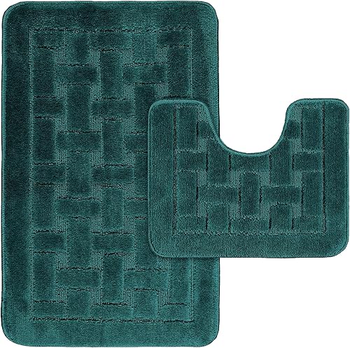 LS DECOR Lot de 2 tapis de bain antidérapants ultra doux absorbant l'eau, lavables en machine, pour sol de salle de bain (bordeaux)