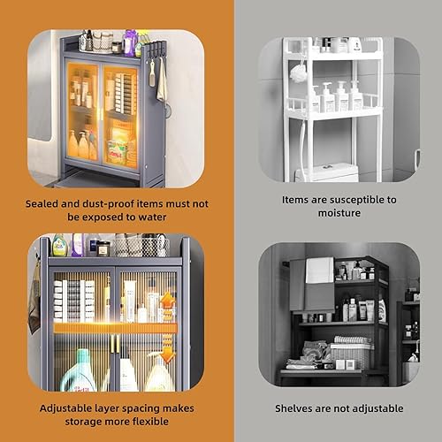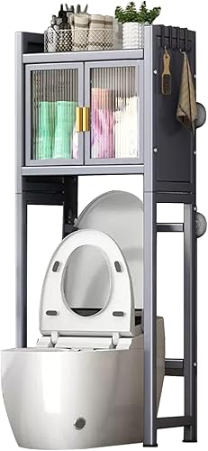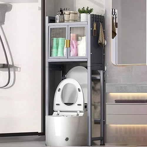 Treesunshine 2 Niveaux Etagere Toilette, Meuble de Toilette WC Rangement, Meuble Étagère de Salle de Bain avec étagère réglable, Rangement au Dessus des Toilettes, 141 x 71 x 26 cm, Gris