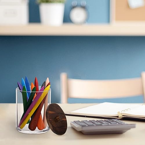 Tbestmax Qtips Support de salle de bain - Distributeur de boules de coton / cotons-tiges - Organiseur de bocal d'apothicaire pour le rangement des couvercles en bois marron