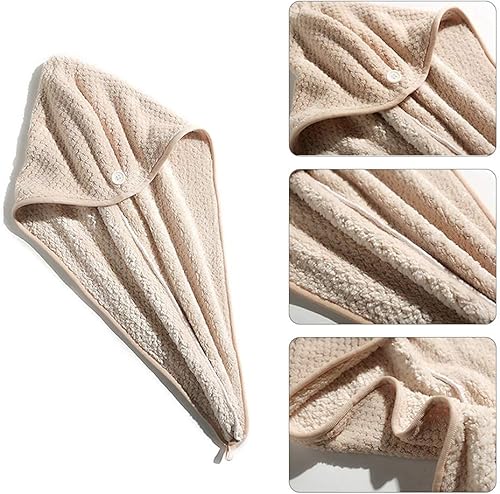 Serviette Cheveux,Serviette Turban,Cheveux Secs Cap,Serviette pour Cheveux, Serviette de tête avec Bouton Microfibre à séchage Rapide - 2 pièces