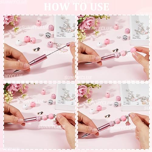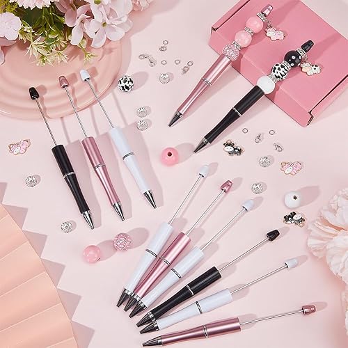 SUNNYCLUE DIY 12 Ensembles de Stylos à Perles Kit de Stylos à Perles en Plastique Stylos à Perles Assortis de Vache Perles de Bois Strass Perles D'Espacement Stylos à Bille à Perles pour Enseignants É