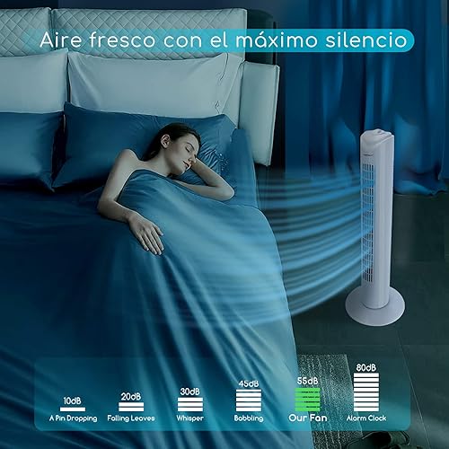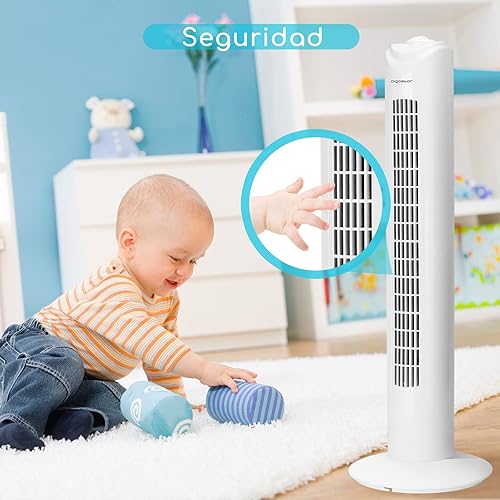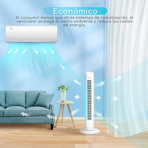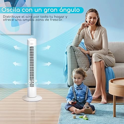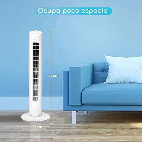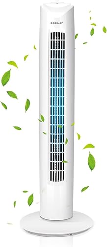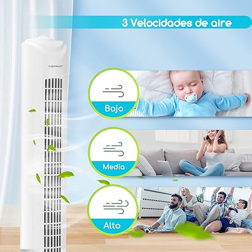 Aigostar 33QRV – Ventilateur colonne avec puissant moteur de 50W. Oscillant, 3 vitesses. Idéal pour bureau et maison. Long câble de 1,8m. Blanc.