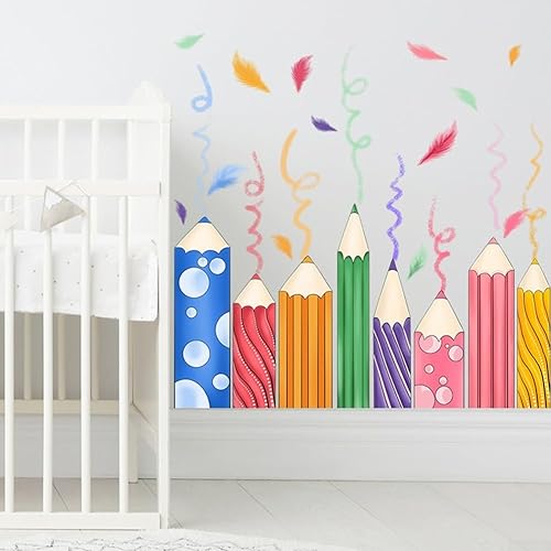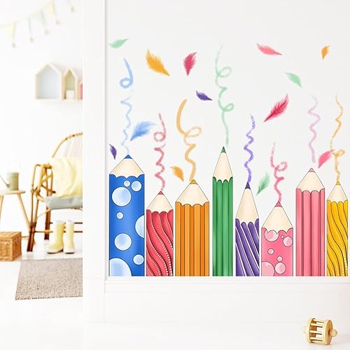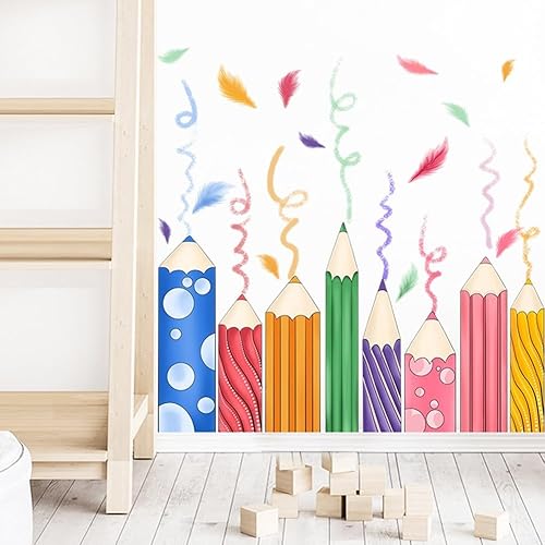 Autocollants de fenêtre colorés en forme de crayon - Décoration murale pour fenêtre, escalier, vitrine, salle de classe, chambre à coucher, salon