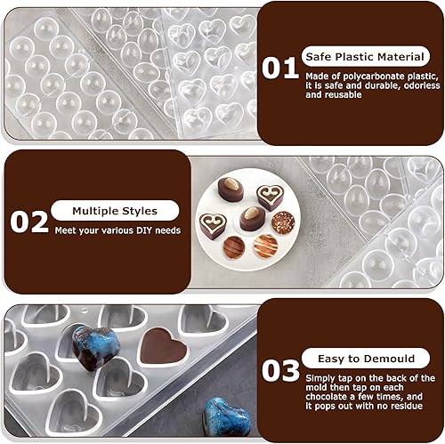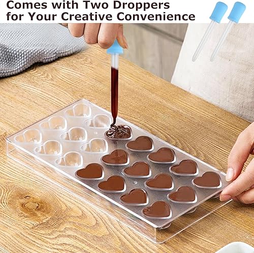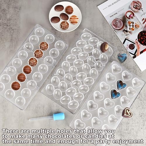 3 Pcs Moule à Chocolat en Polycarbonate Transparent Moule à Bonbons avec 2 Compte-gouttes Moules 3D pour Gelée Bonbons Glaçons