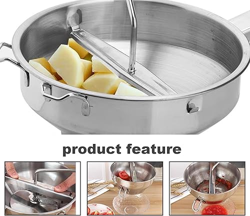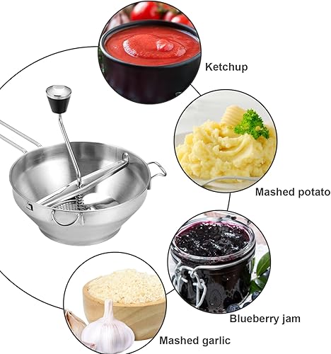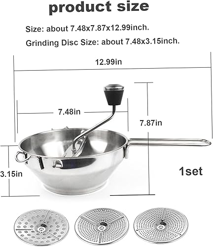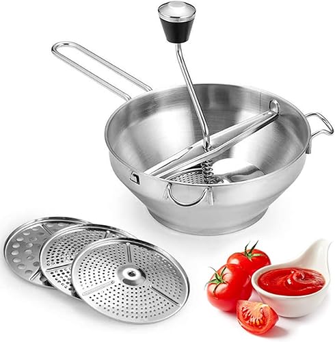 Moulin à nourriture avec 3 disques de broyage 4pcs / ensemble 19 cm / 7,48 pouces en acier inoxydable Manuel de lavage des moulins lavables pour tomate purée