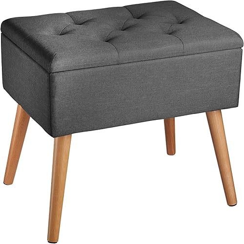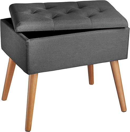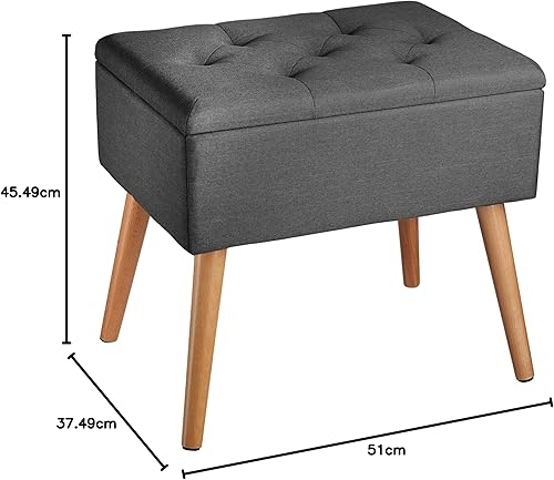 TecTake® Banc de Rangement Pliable Bout de lit Aspect Lin Pieds en Bois Banc Entree Pouf Chambre Dressing Chambre Adulte Repose Pied Tabouret Coiffeuse Meuble Salon Maison Coffre a Jouet