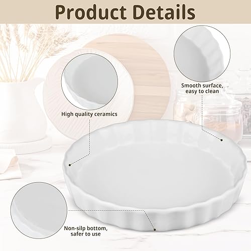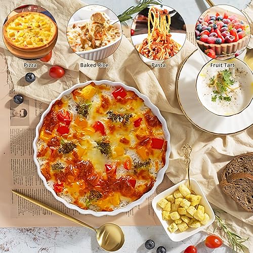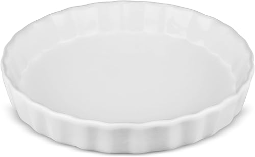 LONTOM Plat à tarte en porcelaine blanche de 18 cm, plat à quiche en céramique, plat à tarte, plat de cuisson en céramique pour tarte, quiche, pizza, pâtes, pâtisserie