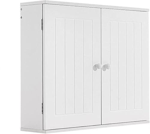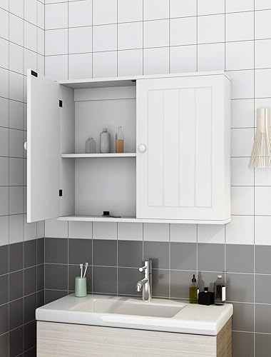 Meuble de Salle de Bain, Armoire Murale Suspendu avec 2 Portes pour Salle de Bain Couloir Salon, 60 x 15 x 50 cm, Blanc