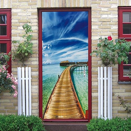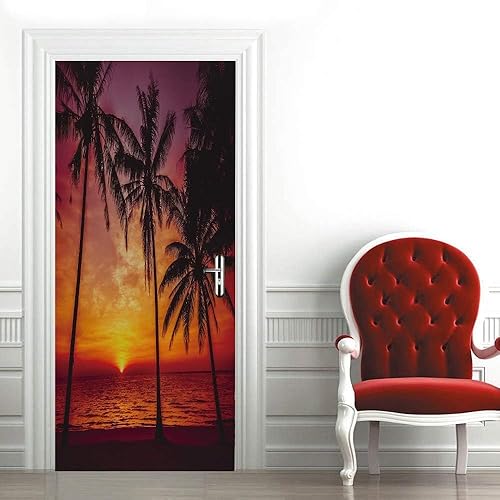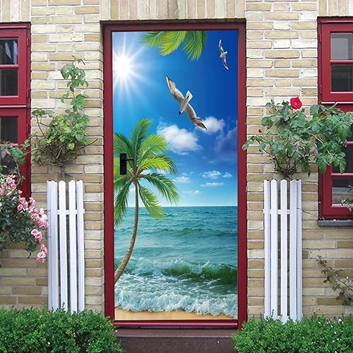 3D Paysage D'Arbres De Plage Porte Autocollant Auto-Adhésif Porte Affiche Porte Papier Peint Porte Murale Porte Art Porte Wall Sticker Porte Photo 95 X 215 Cm Pour La Décoration De Por-47922345108463