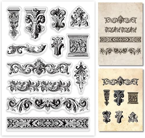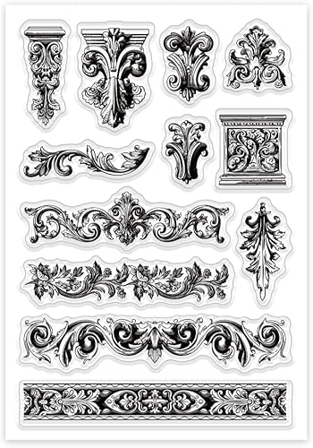 GLOBLELAND Tampons transparents en silicone à motif architectural rétro baroque pour bricolage, scrapbooking, fabrication de cartes, album photo, journal, décoration d'intérieur