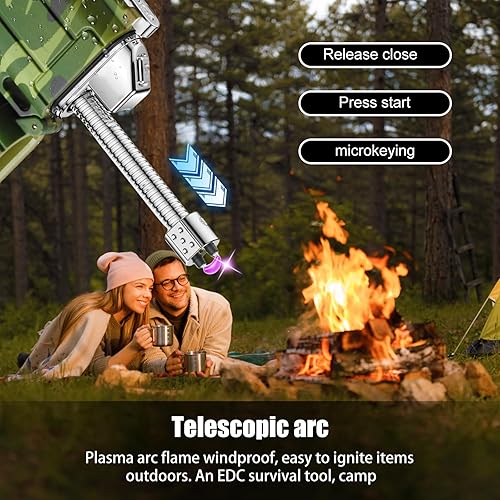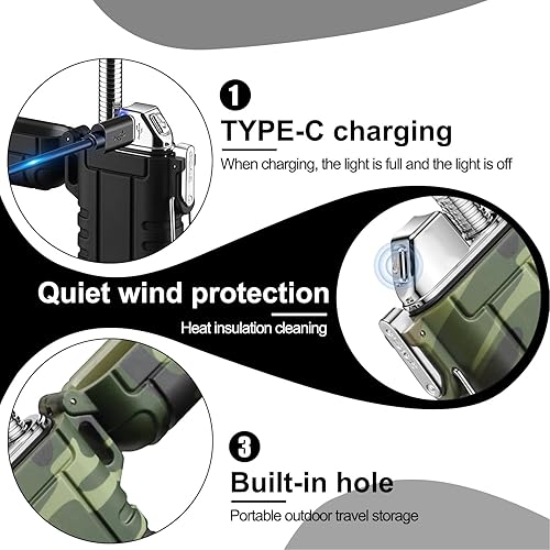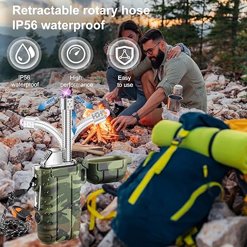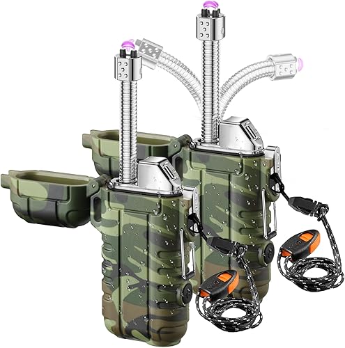 Lot de 2 briquets à arc électrique, coupe-vent, étanches, avec charge USB-C, flexible et extensible, pour camping, cuisine, survie en plein air, cadeau pour homme