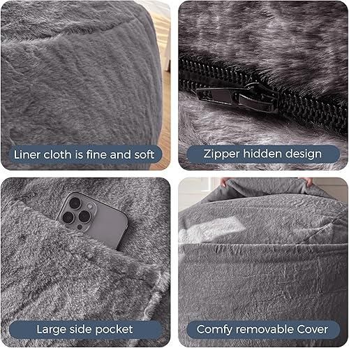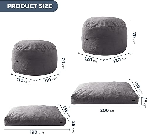 MAXYOYO Pouf lit convertible en pouf - Canapé en mousse avec housse à poils longs et rembourrage moelleux pour adultes, adolescents, invités (anthracite, 135 x 190 cm)