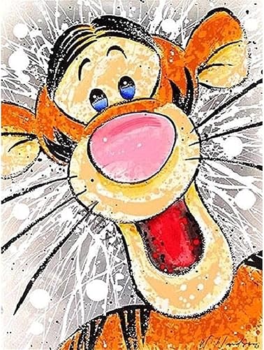 Diamond Painting Complet Tigrou Winnie 12x16Inch 5d broderie peinture diamant painting kit complet pour Enfant/Adulte Strass, Diamant Arts Craft pour la Décoration Murale Round Drill 30x40cm