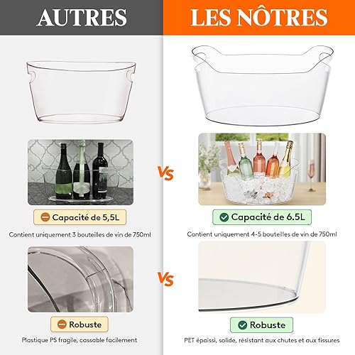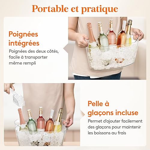 Lifewit Seau a Glacon Portable 6.5L, Seau a Champagne XXL avec Cuillère Lot de 1, Plastique Rafraichisseur de Bouteille de Vin pour Cocktail, Boissons, Vin, Bière