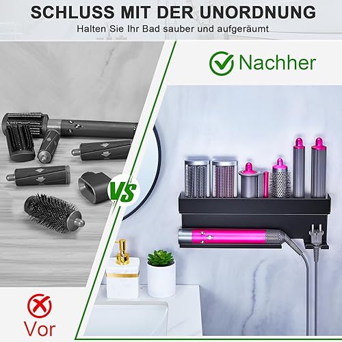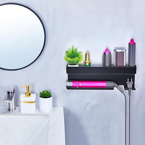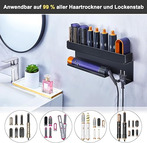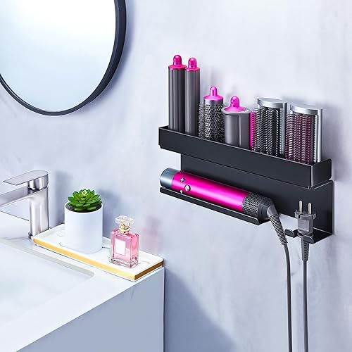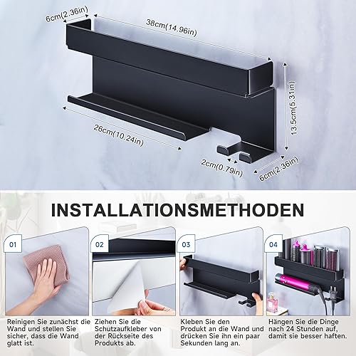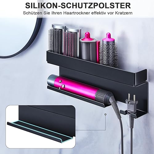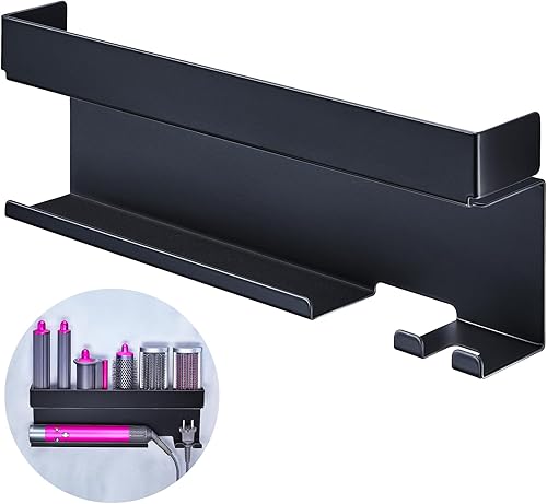 GGQ Support Seche Cheveux et Lisseur, Support Seche Cheveux Sans Percage, Porte Seche Cheveux Mural pour Rangement Accessoires Styler Curling Appareils, Porte Lisseur pour Salle de Bain, Noir