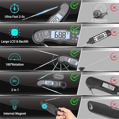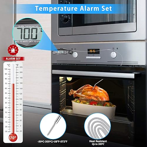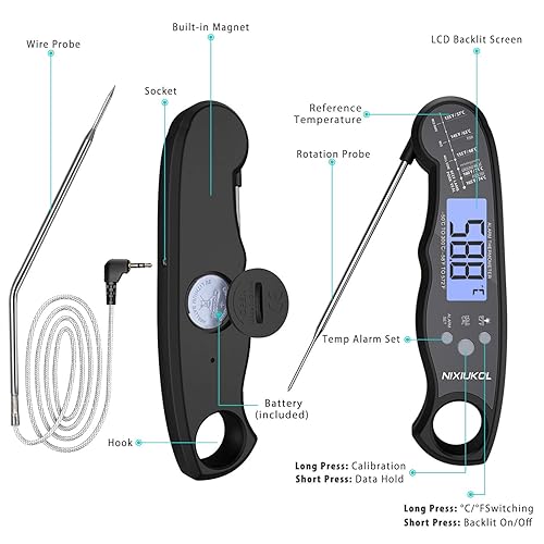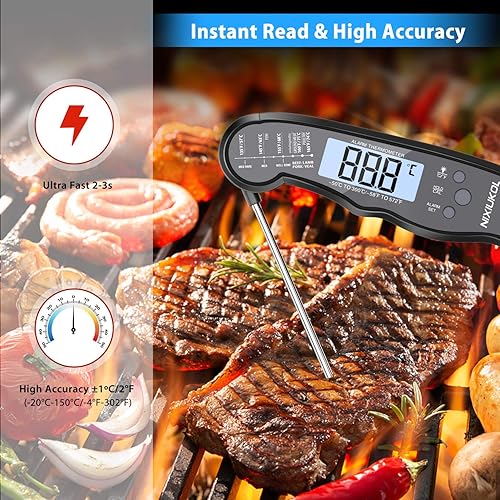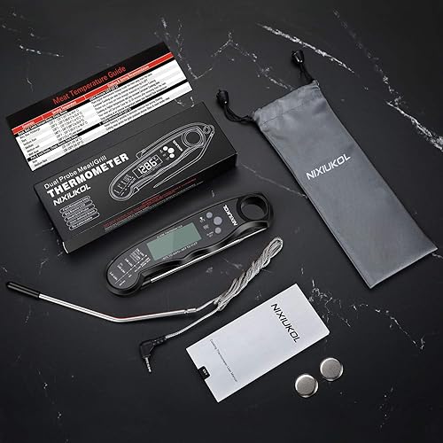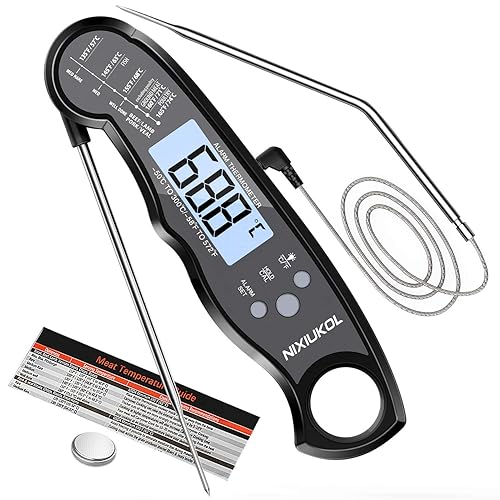NIXIUKOL Thermomètres Cuisine Digital Thermometre Cuisson à Lecture instantané avec 2 sondes Alarme de Temperature Écran LCD Rétro Éclairage Aimant Barbecue Thermomètre pour Viande BBQ Four Steak Vin