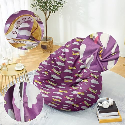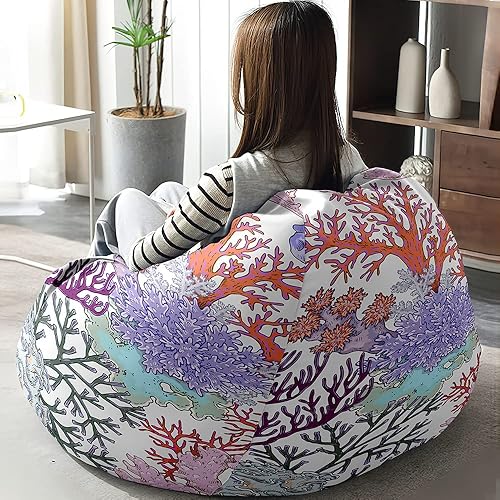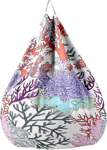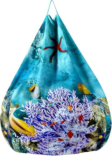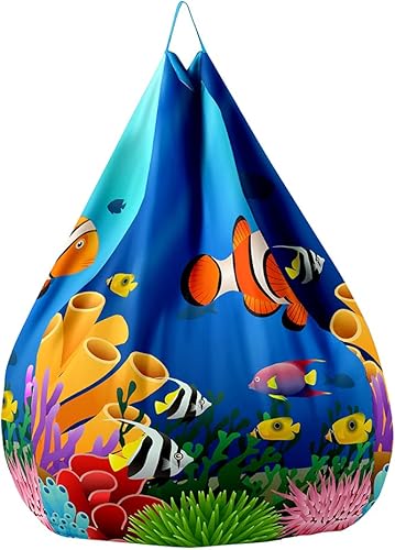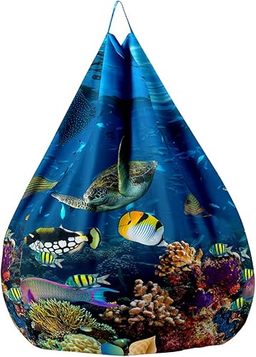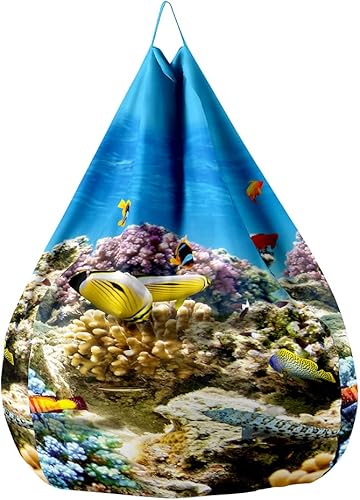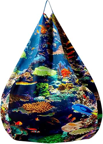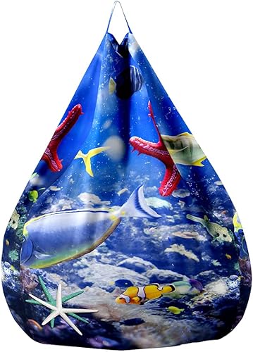 Highdi Pouf Poire Housse de Pouf pour Enfants Adultes, Rangement de Jouets Stockage, Grande Pouf Portable pour Fauteuil Poire Déco pour Salon -Paysage Océanique (80x90cm,Dessin animé)