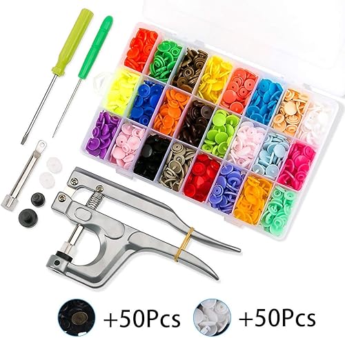 460 PCS Boutons Pression Plastique avec Kit de Pince pour T3 T5 T8 en 24 Couleurs pour DIY Artisanat