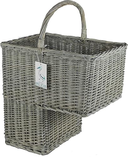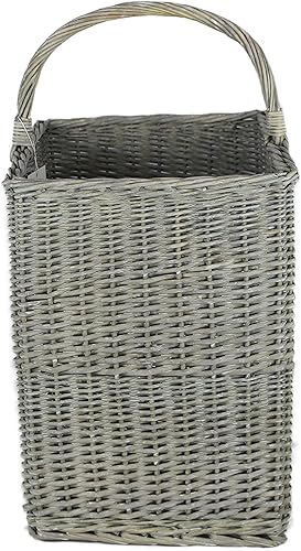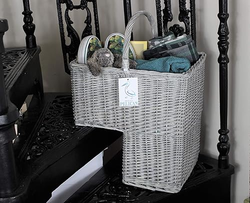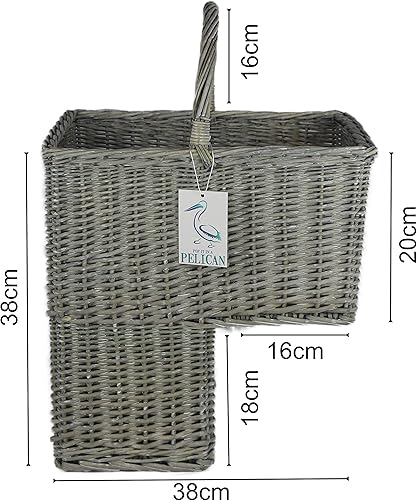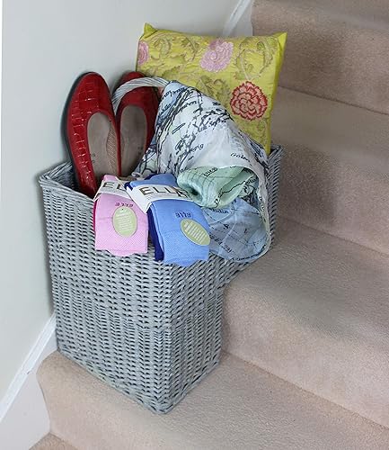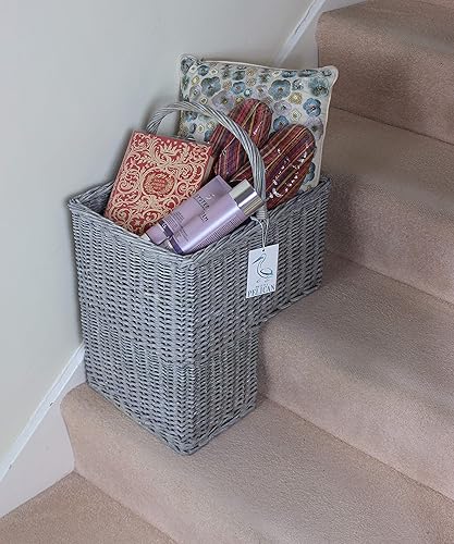 Panier d'escalier gris et marron naturel. Saule 100 % naturel. Pour le transport et le rangement. Convient pour les escaliers (carré gris).