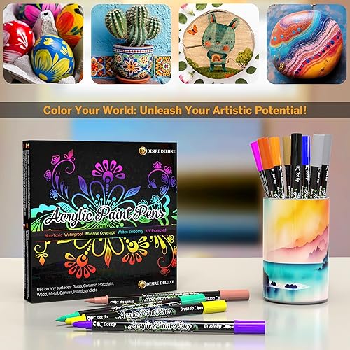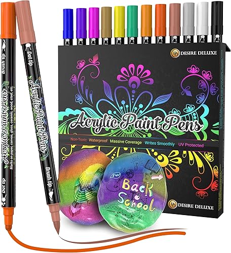 Desire Deluxe Stylos de peinture acrylique - non toxique, peinture pour pierre, céramique, verre, bois, porcelaine, cailloux, pointe ronde réversible