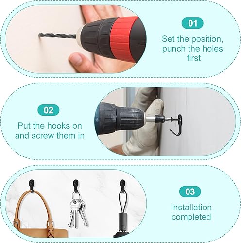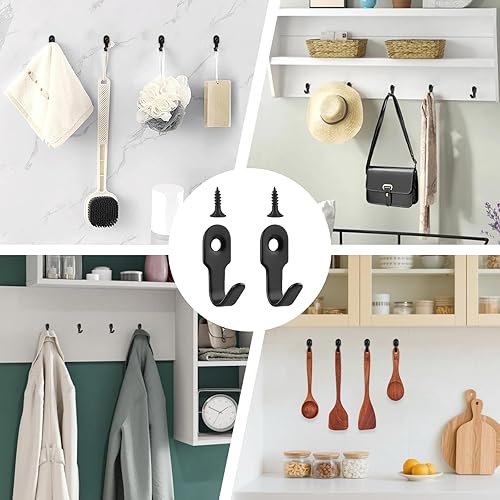 KILDOWS 20 Pièces Crochets Mural Simples Crochet Porte Manteau Mural Mini Patère Crochet a Visser avec 20 vis Hook Pour Porte, Mur, Salle De Bain, Cuisine, Maison, Noir
