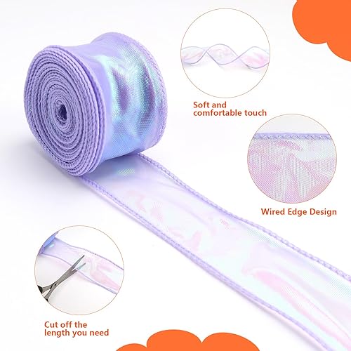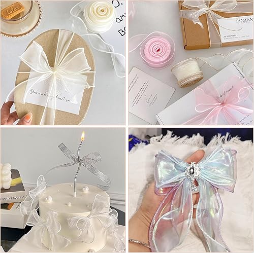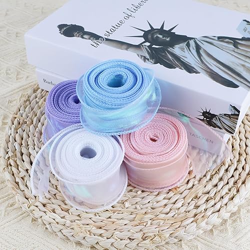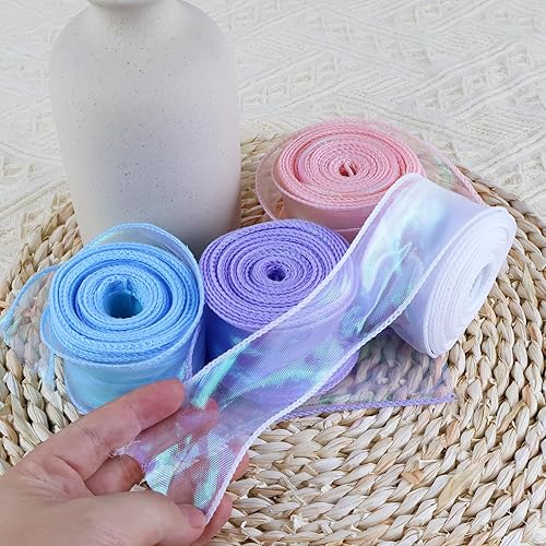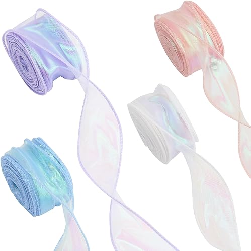 WPPQWP Lot de 4 rouleaux de ruban en organza irisé de 40 mm de large pour ruban cadeau, Noël, mariage, bouquet, bricolage, invitations de mariage