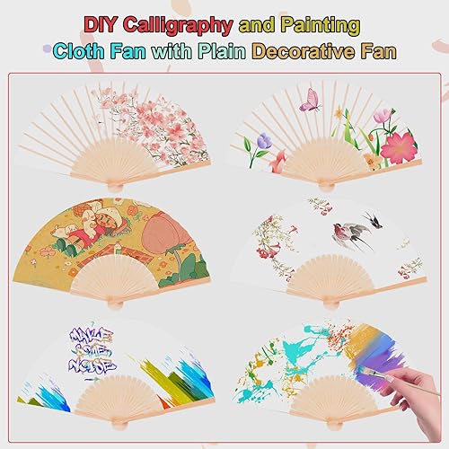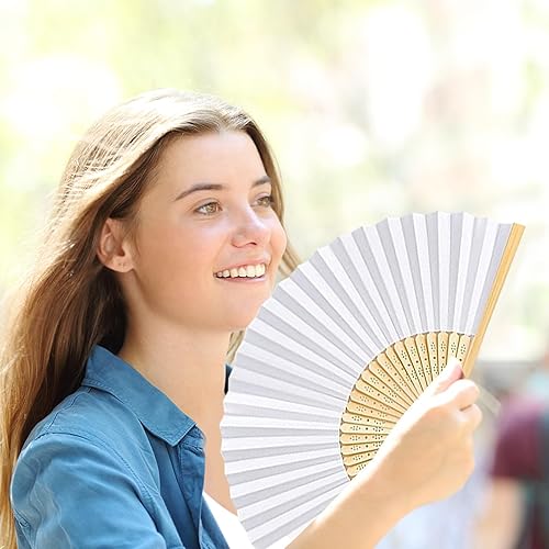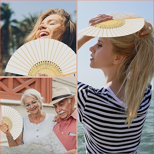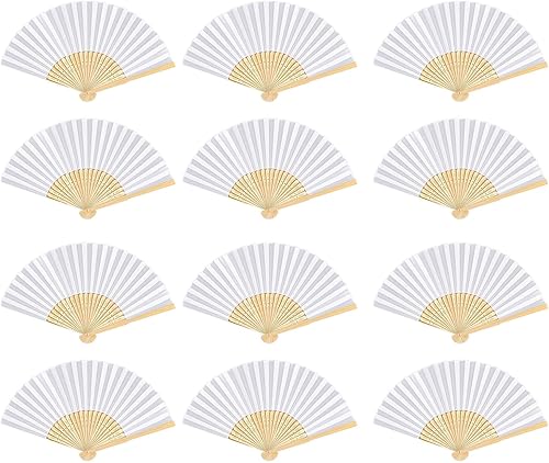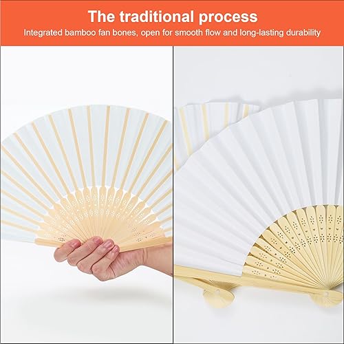 ZITUZY 12 Pièces Eventail Mariage, Blanc Eventail Mariage, AolKee Blanc Éventail, pour Mariage, Fête D'été, Avec Sac (Blanc)