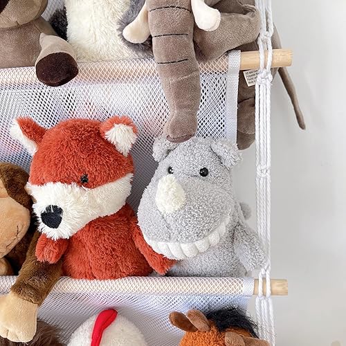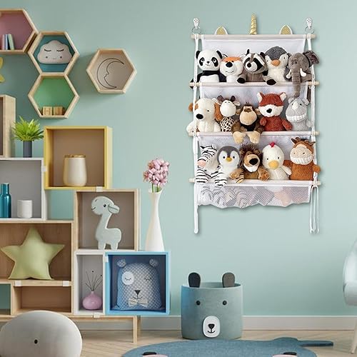 Solution de rangement pour jouets à suspendre, filet mural pour chambre d'enfant, animal en peluche, filet mural avec trois couches de rangement pour jouets en peluche pour salle de jeux, chambre