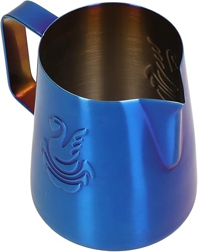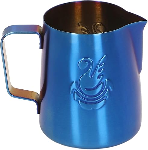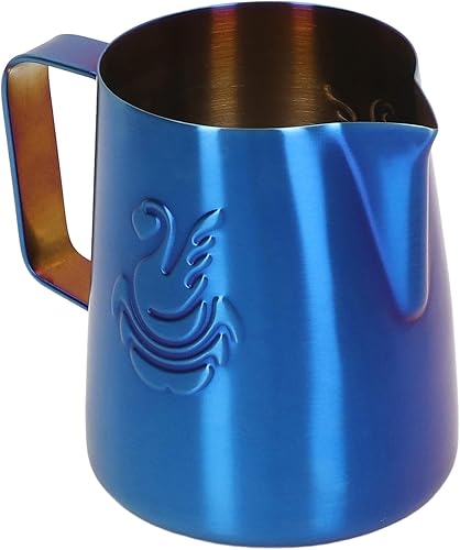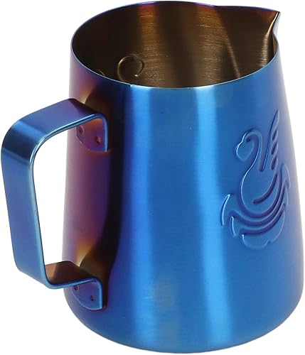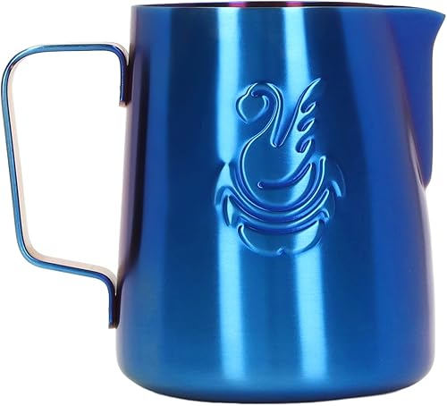 Akozon Pichet Latte Art en Acier Inoxydable 380 Ml avec Bec Verseur, Design Unique en Forme de Cygne, Poignée aux Couleurs Vives – pour les Amateurs de café et les Baristas (BLUE)