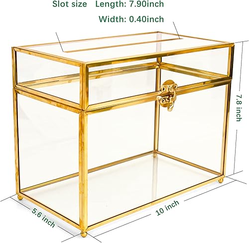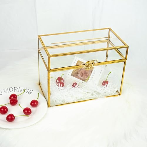 YIMORENCE V Boîte à cartes en verre doré pour mariage - Boîte de mariage en verre doré - Forme rectangulaire avec fente et pied - Parfaite pour une réception de mariage, une fête ou une cérémonie