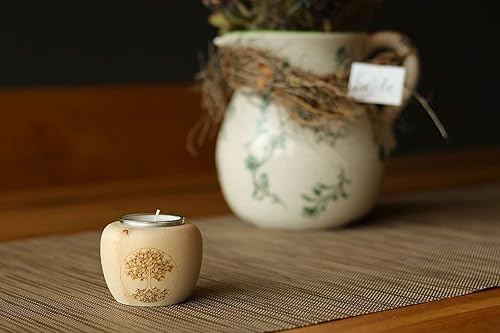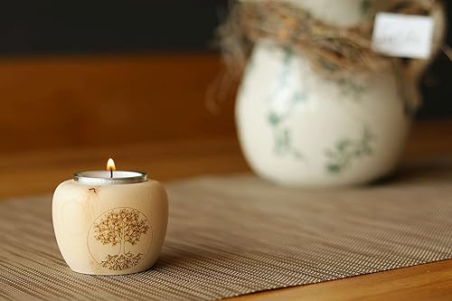 Dekobox Photophore Mia en bois de pin avec motif arbre de vie au laser, H 7 x D 7 cm